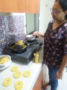 Vishwanath’s family shifted to Indonesia; they lived in Surabayanim in East Jawa for 1.5 years. As I mentioned earlier, Mrs. Meena did simple cooking. Over the next few days of their stay, she realized that Indians barely got Indian snacks and sweets. She sensed their craving. Mrs. Meena decided to brush up on her skills and knowledge because she knew that if she wanted to cook a variety of Indian food, her simple cooking would not fetch much. The next few days, she spent time doing research, doing trials, and cooking till she mastered the recipes. With the support of her husband and daughter, Mrs. Meena rolled out her menu, which included popular south Indian Muruku that was crisp and perfect in taste; Sev; chakali; Chiwda, Mixtures, tasty Namkeens; and Theplas. Rice vadams, a daily staple and the most popular food among South Indians, were a big hit. They were delighted and complimented her cooking for its taste and price. She also took orders for nutritious breakfasts like Idli, Dosa, Upma, Sevai, Adai, Uthappam, and much more. Being away from their homeland and not getting Indian food, Mrs. Meena was a blessing in disguise for all. With not too many Indian restaurants, her food garnered immense popularity among Indians as well as local Indonesians, who loved the taste of India.