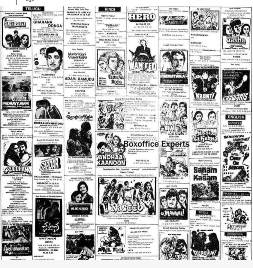 There used to be a dark, shady character known as ‘Sattarbhai’ who was the equivalent of today’s BookMyShow. Nobody knew or ever met ‘Sattarbhai’. He was just a telephone number. You called the number. Your call was cut. And ‘Sattarbhai’ called back in 5 minutes. A gruff, no-nonsense voice. You told him what movie you wanted to see, which show, and where. He would deliver the ticket to your house. Or ask you to collect it from outside the theatre where his man would be waiting. For the first day, the first show tickets, ‘Sattarbhai’ charged a premium of 100 rupees a ticket. It was a hush-hush operation that ran smoothly. With the introduction of multiplexes and booking online, ‘Sattarbhai’ disappeared. Just like the full newspaper page of black-and-white cinema ads of yesteryear…