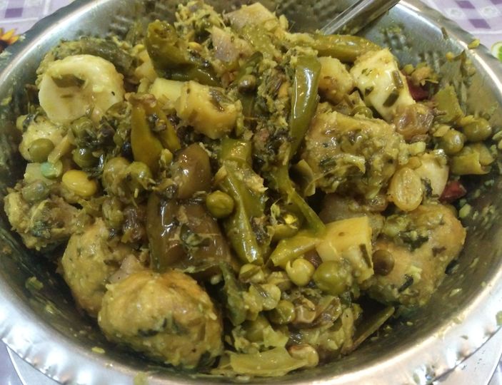 Having indulged in this culinary delight at a recent Gujarati wedding reception, I marveled at the meticulous process involved in crafting Undhiyu. Slow-cooked upside down and buried underground in an earthen pot fired from above by coal, the dish is infused with a medley of spices – ginger, garlic, green chili, turmeric, cumin, and pepper. A touch of sweetness from sugar, a hint of moisture from water, and the richness of vegetable oil elevate the flavors. Garnished with coriander leaves, lime, chopped peanuts, and freshly grated coconut, the dish emerges from the steam cooking process, leaving the Undhiyu dry yet showcasing chunky, crisp vegetables, coated in a thin layer of spice and oil.