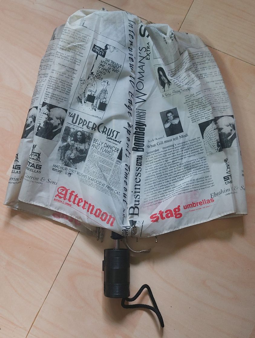 The monsoon rains have been pouring down in Mumbai for weeks, but there’s one umbrella I’m not going to use. I’ve had it for over 20 years, but I’ve never taken it out in public. It’s a small, folding model designed by my friend Aziz Currim of Ebrahim Currim & Sons, the makers of the popular Stag Umbrellas. The canopy is made from pages of a city newspaper I used to edit, and one of the fabric panels features a picture of me from a weekly column I wrote in the early 2000s.