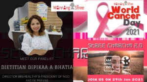 The online event of Stree Charcha II happened on January 29, 2021, on the subject ” I Am and I Will ” for World Cancer Day awareness by WinningStree. That is; Together, all our actions matter – Let us Together Make A Cancer Free World”!! This year is a reminder of the enduring power of cooperation and collective action. When we choose to come together, we can achieve what we all wish for: a healthier, brighter world without cancer.